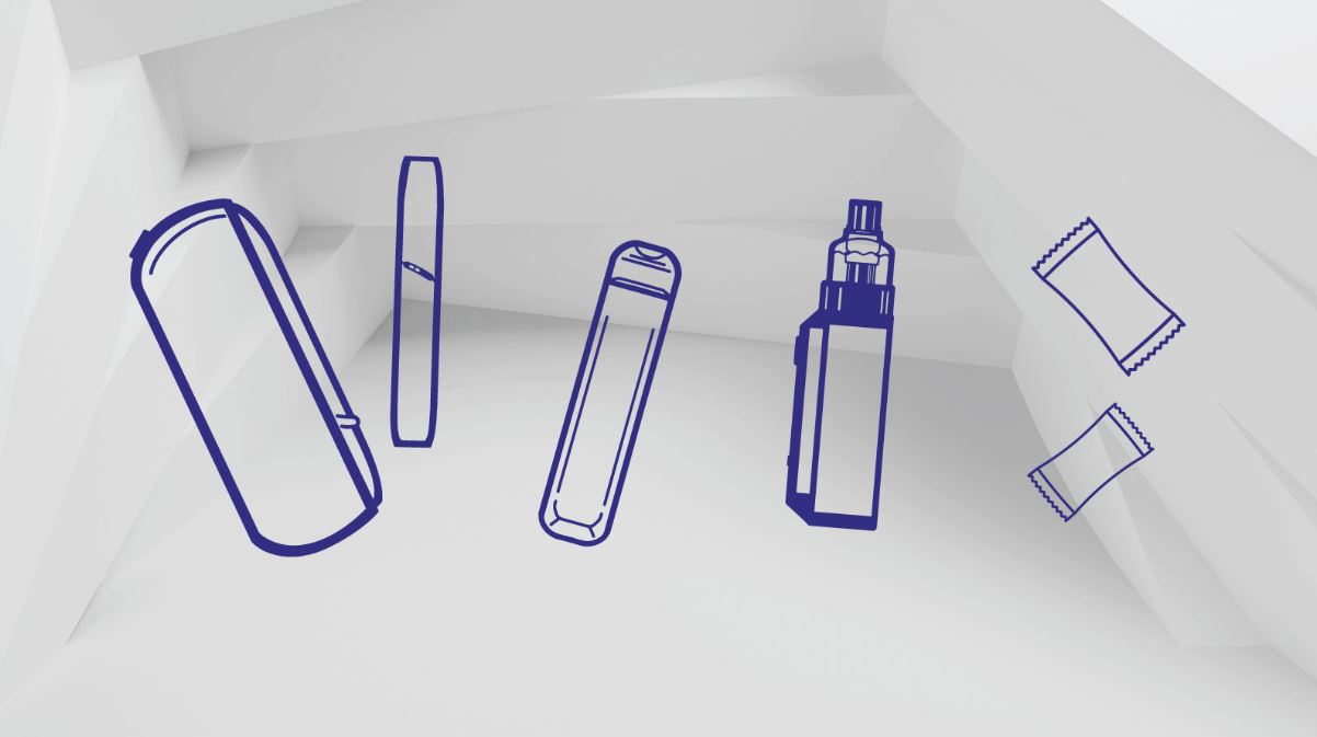 produk tembakau yang dipanaskan, dan kantong nikotin.