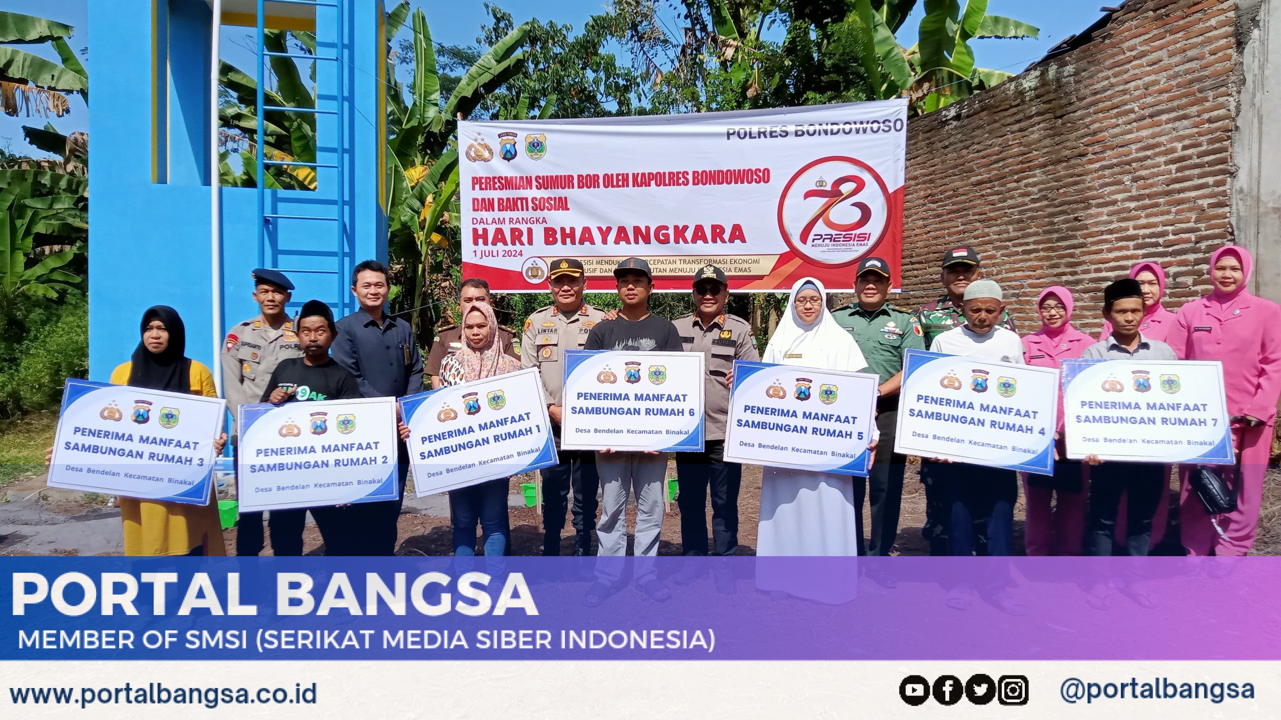 Bondowoso, PORTALBANGSA.CO.ID – Masyarakat Desa Bendelan, Kecamatan Binakal Bondowoso di HUT Bhayangkara ke 78 mendapat bantuan sumur Bor, dititik tersebut dinilai mampu mencukupi kebutuhan air warga hingga 72 KK.