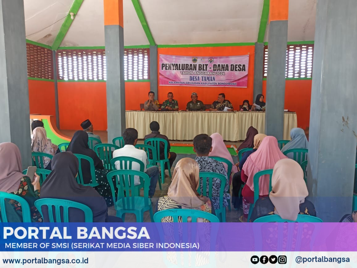 Bondowoso, PORTALBANGSA.CO.ID – Kamis, 18 Juli 2024 – Desa Taman, Kecamatan Grujugan menggelar acara penting dalam rangka penyaluran Bantuan Langsung Tunai Dana Desa (BLT-DD) tahap kedua untuk bulan April, Mei, dan Juni 2024. Acara berlangsung di Balai Desa Taman mulai pukul 09.00 WIB hingga selesai.