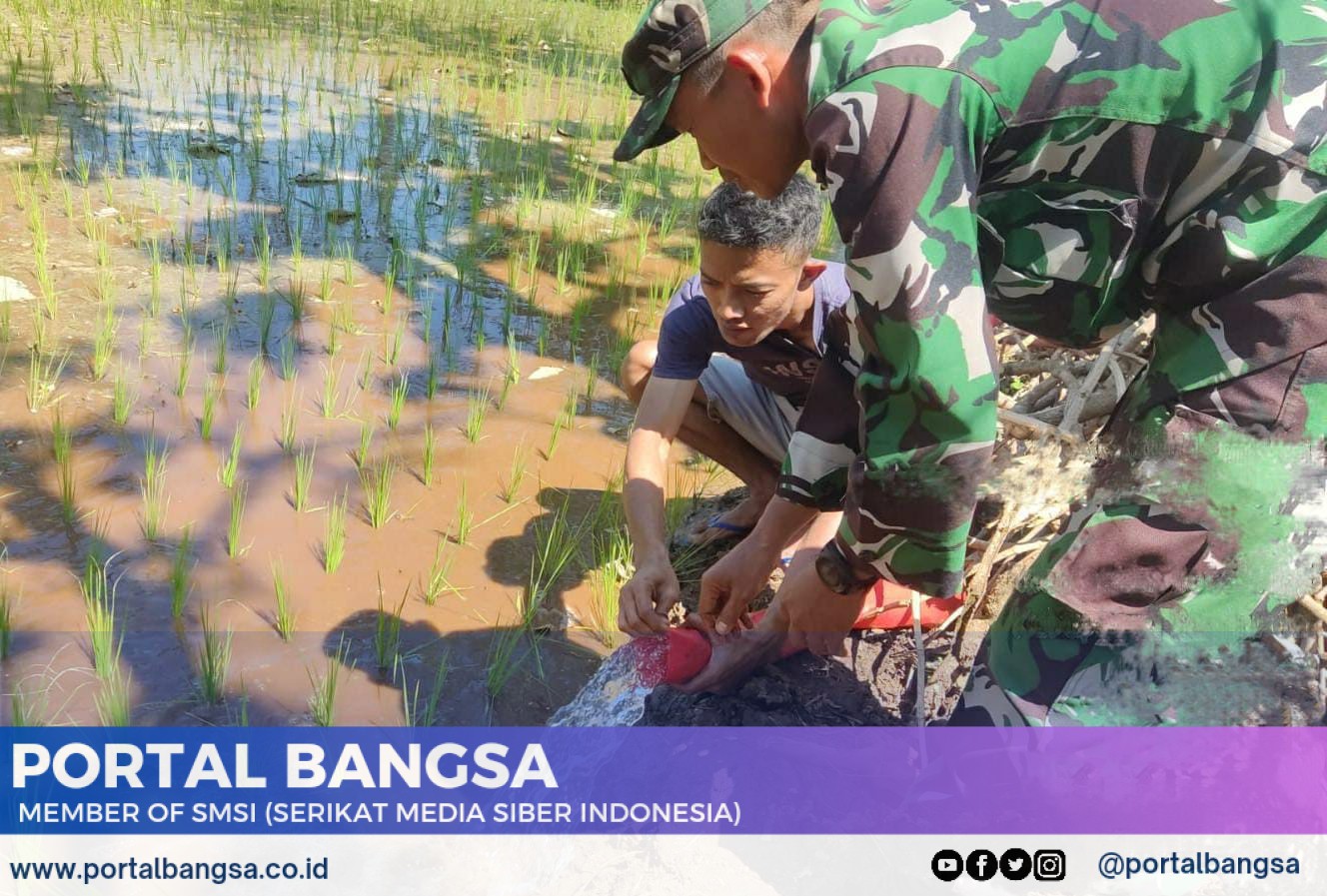 Babinsa Kodim 0822/14 Tindak Lanjuti Program Han Pangan dengan Pendampingan Pompanisasi di Lahan Padi