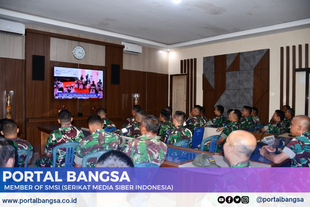 Bondowoso, PORTALBANGSA. CO.ID – Seluruh jajaran Prajurit Perwira, Bintara dan Tamtama Kodim 0822 Bondowoso mengikuti kegiatan menyaksikan secara Live Streaming Metro TV wawancara Kasad dalam rangka penutupan TMMD Ke-121 Tahun 2024 bertempat di Kodim 0822 dan Koramil jajaran, Minggu sore (25/8/2024).