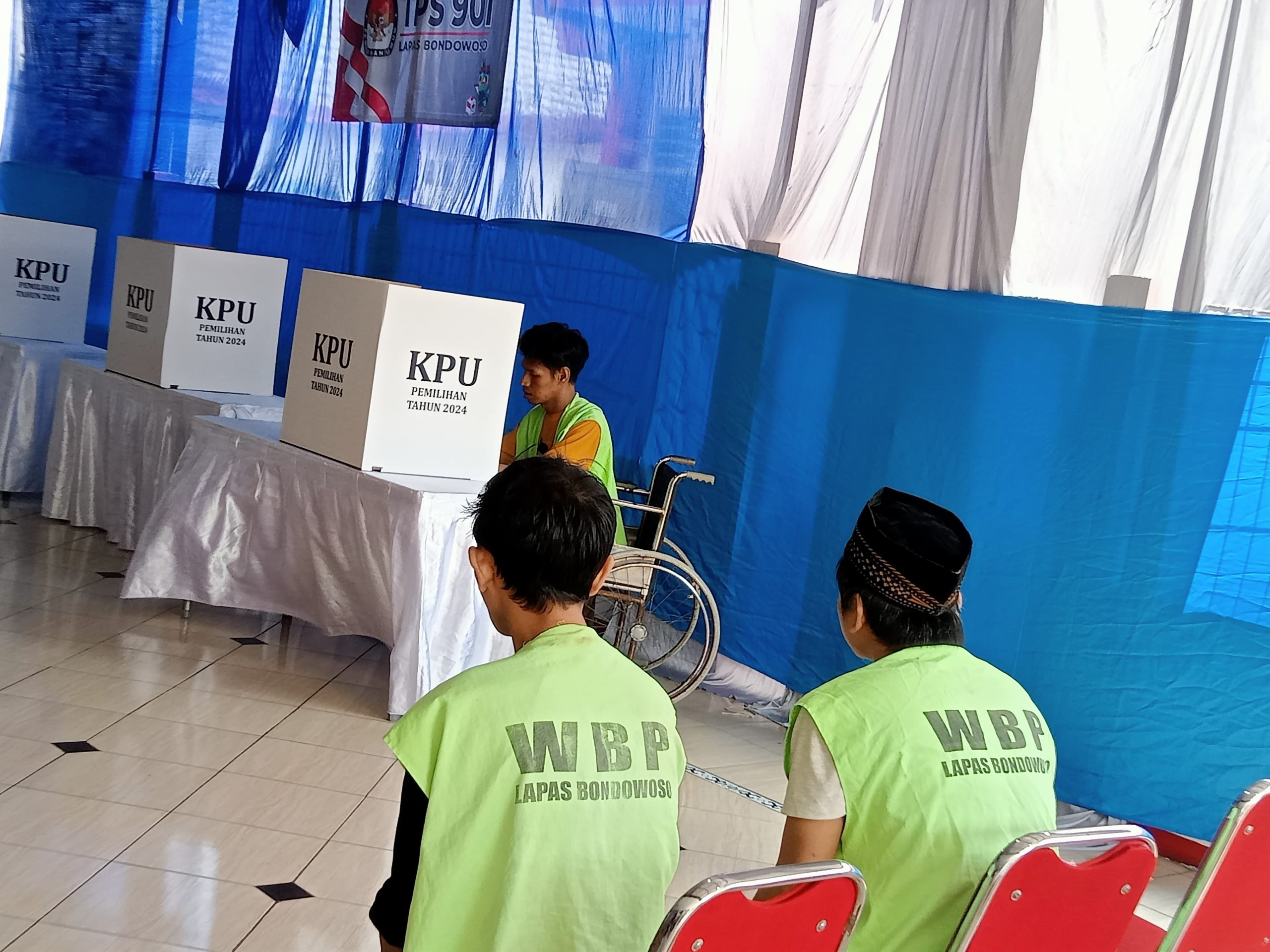 Secara bergantian para narapidana melakukan pecoblosan. Proses pencoblosan dimulai pada pukul 07.00 WIB, dan ditutup pada 13.00 WIB.