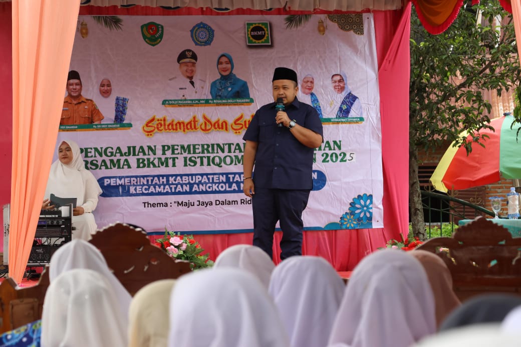 Tapanuli Selatan, PORTALBANGSA.CO.ID – Bupati Tapanuli Selatan (Tapsel), Dolly Pasaribu, menghadiri pengajian rutin yang digelar oleh Badan Kontak Majelis Taklim (BKMT) di Masjid Miftahul Jannah, Desa Muara Tais I, Kecamatan Angkola MuaraTais, Selasa (14/1).