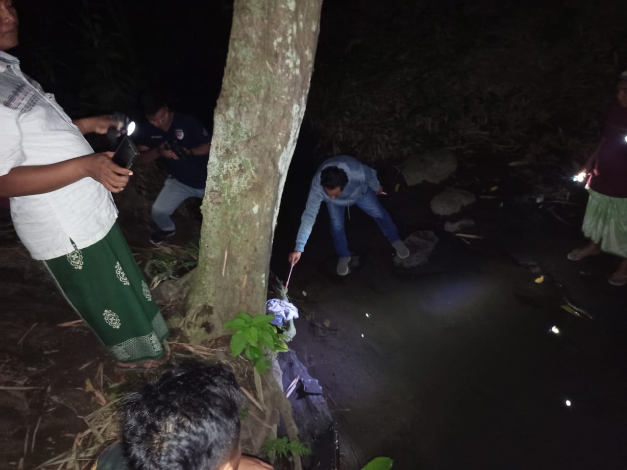Awal mula penemuan mayat tersebut diketahui oleh tiga anak kecil yang ingin bermain petasan di area sungai tersebut.