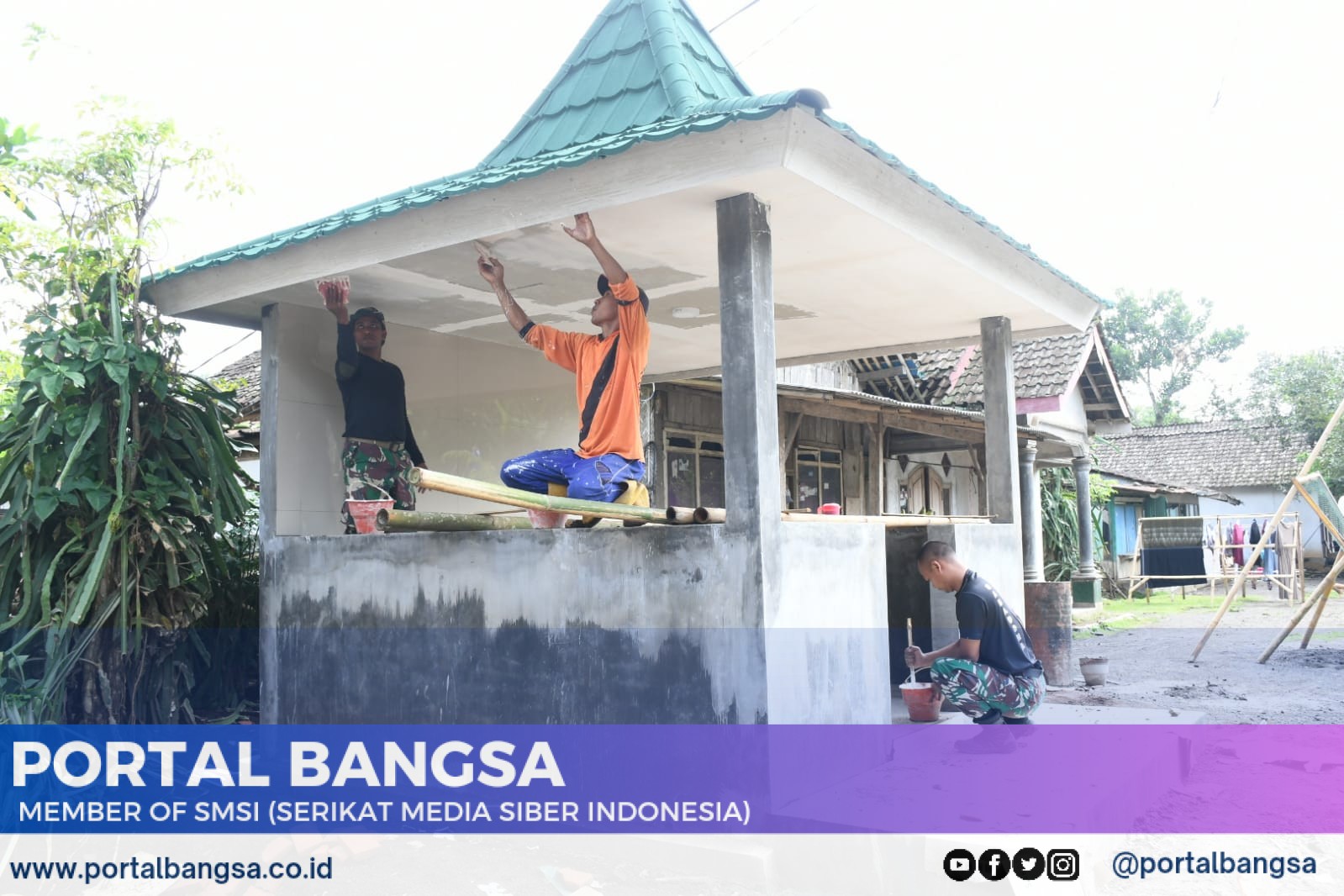 Semangat dan Kompak di TMMD, TNI dan Warga Gotong Royong Cat Poskamling