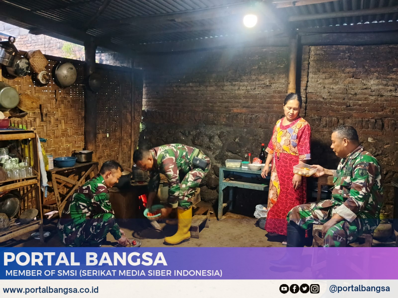 Bondowoso, Portalbangsa. Co. Id – 6 Maret 2025 – Pemandangan tak biasa terjadi di dapur rumah Bu Aziz, salah satu warga lokasi TMMD ke-123 Kodim 0822 Bondowoso. Sejumlah anggota Satgas TMMD, yaitu Peltu Agus, Peltu Wiwit, dan Peltu Ngadiman, tampak sibuk membantu menyiapkan menu berbuka puasa, Kamis (6/3).