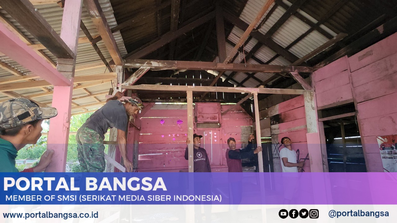 Pesisir Barat, Portal bangsa. Co. Id– Dalam rangka menjalankan instruksi Kepala Staf Angkatan Darat (Kasad) terkait percepatan program bedah Rumah Tidak Layak Huni (RTLH), Satgas TNI Manunggal Membangun Desa (TMMD) ke-124 Kodim 0422/Lampung Barat melaksanakan kegiatan fisik berupa pembongkaran rumah milik Bapak Sabar di Pekon Pemerihan, Kecamatan Bengkunat, Kabupaten Pesisir Barat, pada Jumat (23/5).