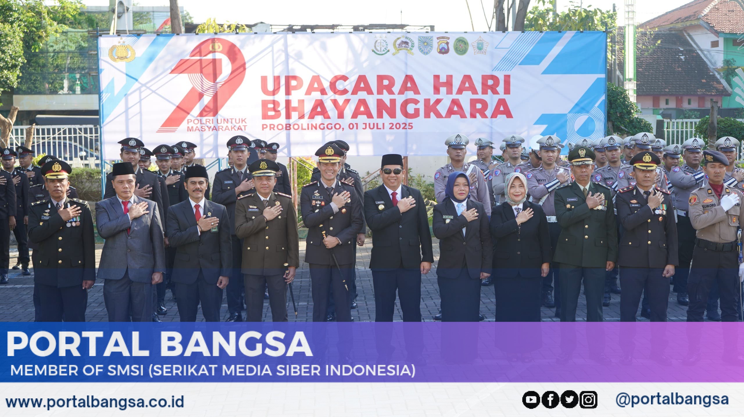 Kepolisian Resor (Polres) Probolinggo Kota menggelar upacara peringatan Hari Bhayangkara ke-79 yang dipusatkan di halaman Pemkot Probolinggo, Rabu (1/7/2025). Kegiatan ini dihadiri jajaran Forum Koordinasi Pimpinan Daerah (Forkopimda) Kota Probolinggo, anggota jajaran Polres, serta sejumlah instansi terkait.