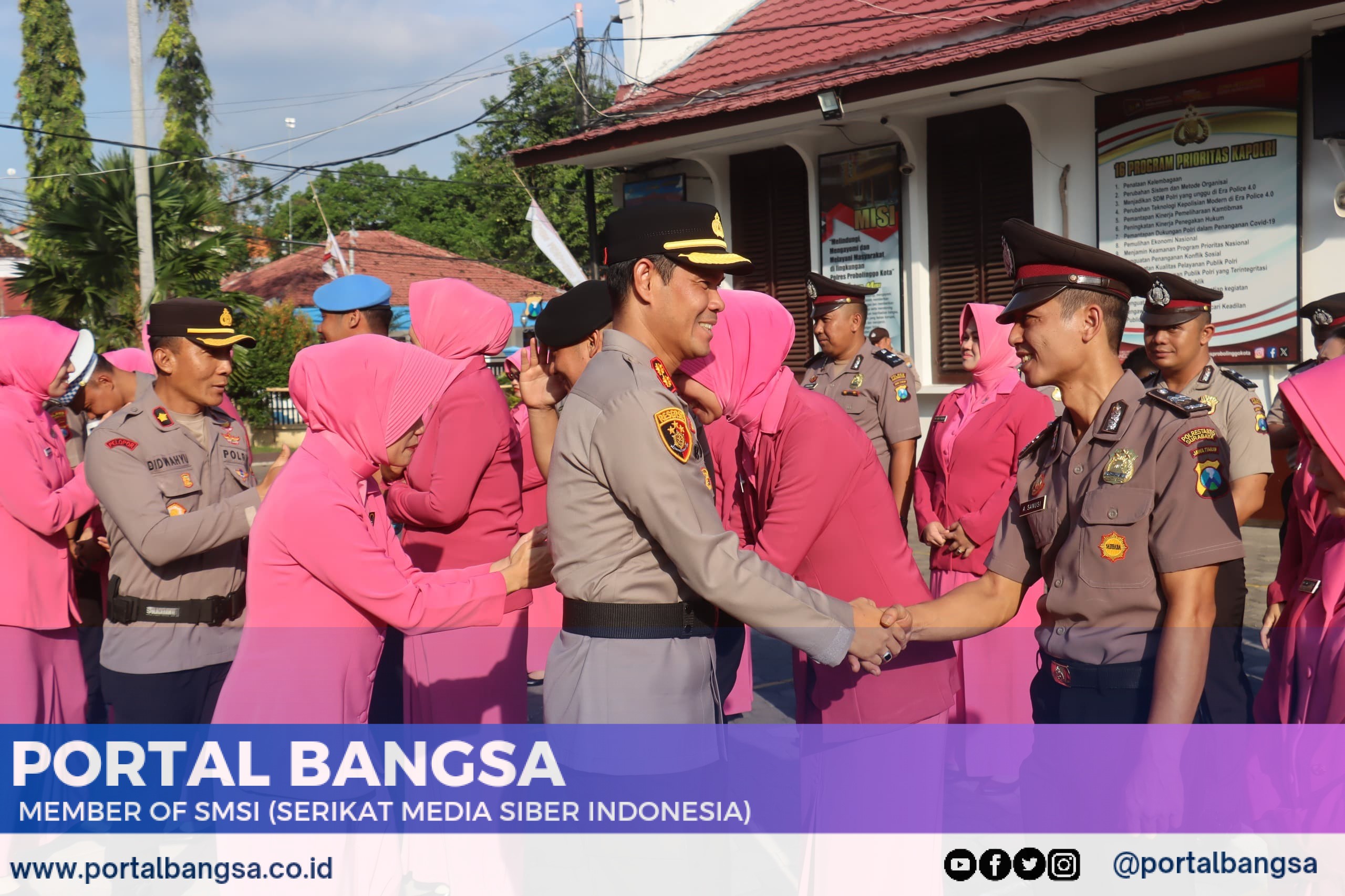 “Selain 30 personel bintara Polri tersebut diatas juga terdapat 1 personel perwira Polri yang dinaikkan pangkatnya setingkat lebih tinggi dari AKP menjadi Kompol yaitu atas nama Kompol Suharsono, S.H., M.M. Jabatan Kapolsek Kademangan Polres Probolinggo Kota yang saat ini juga sedang mengikuti upacara pelantikan kenaikan pangkat di Mapolda Jatim.” Ucapnya