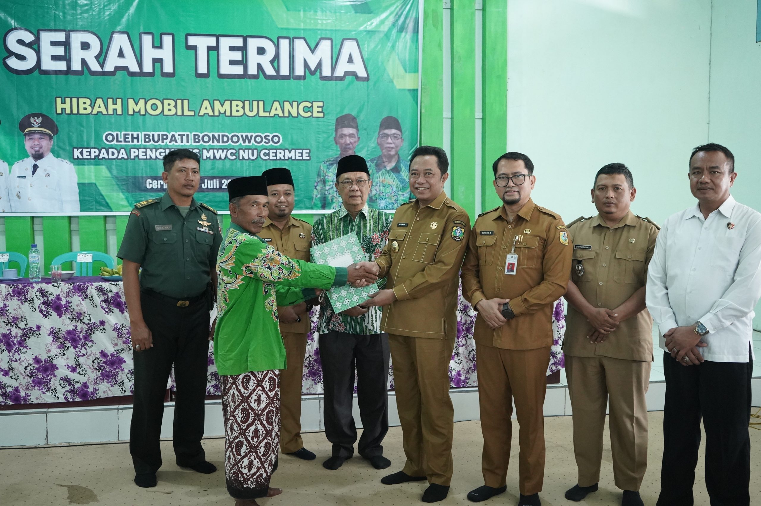Bondowoso, http://Portal bangsa. Co. Id – Wujud komitmen Pemkab Bondowoso dalam meningkatkan layanan kesehatan masyarakat diwujudkan dengan menyerahkan satu unit mobil ambulan kepada Majelis Wakil Cabang Nahdlatul Ulama (MWCNU) KecamatanCermee. Senin, 28/7/2025.