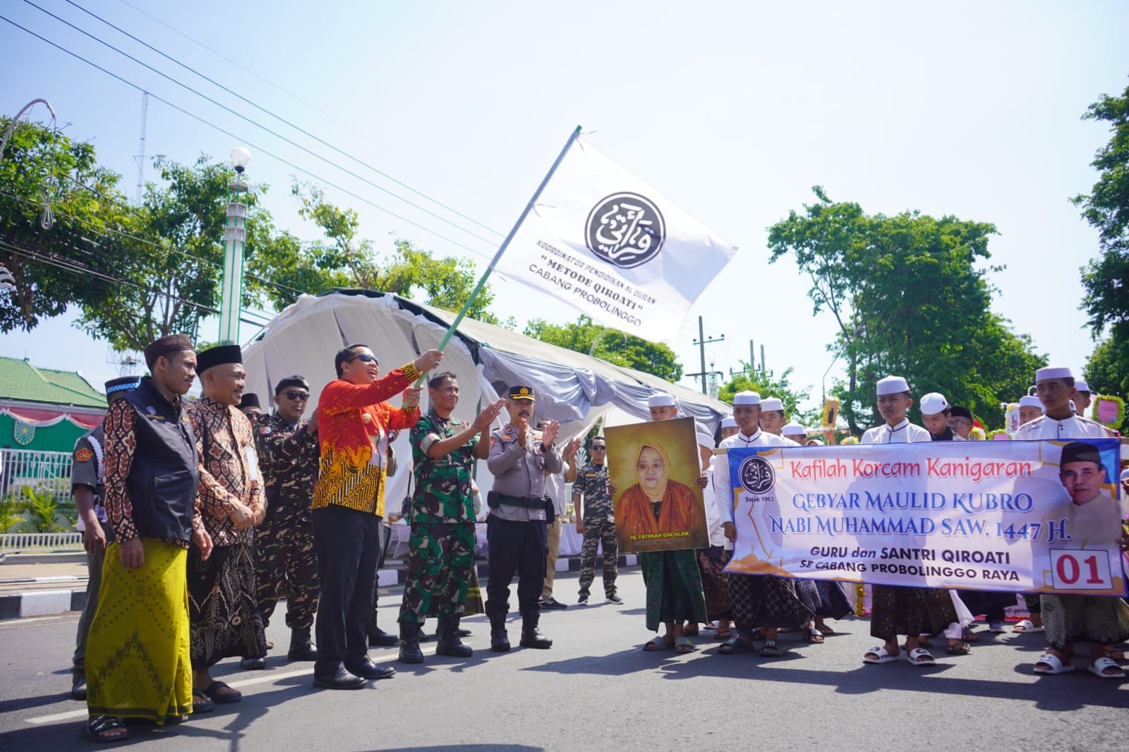 Sebanyak 3500 Santri Qiroati se- Probolinggo Raya memadati depan Kantor Wali Kota Probolinggo, Minggu (28/9) siang. Wali Kota Probolinggo dr. Aminuddin pun hadir untuk melepas Kirab Maulid Kubro Nabi Muhammad SAW 1447 H.