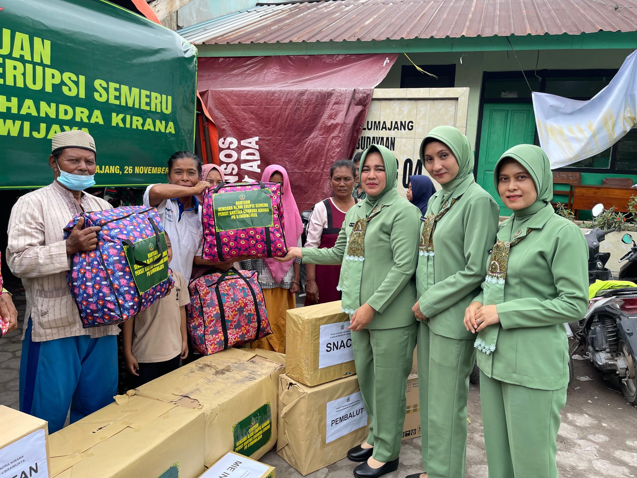 Bantuan berupa bahan pokok serta perlengkapan kebutuhan sehari-hari tersebut diterima dari Persit Kartika Chandra Kirana Daerah V/Brawijaya sebagai bentuk perhatian terhadap masyarakat Lumajang yang masih menghadapi dampak bencana.