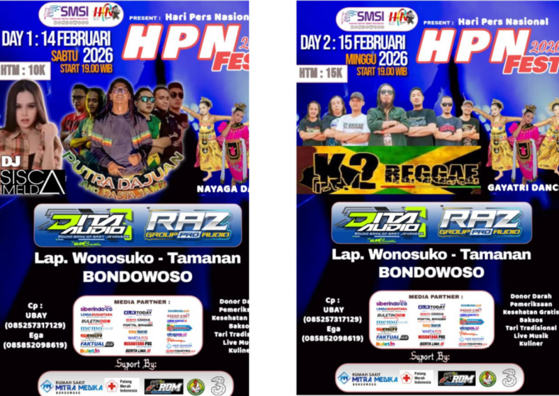 Catat waktunya, ajak keluarga dan sahabat, serta jadilah bagian dari semangat kebersamaan di HPN Fest 2026 bersama SMSI Bondowoso.