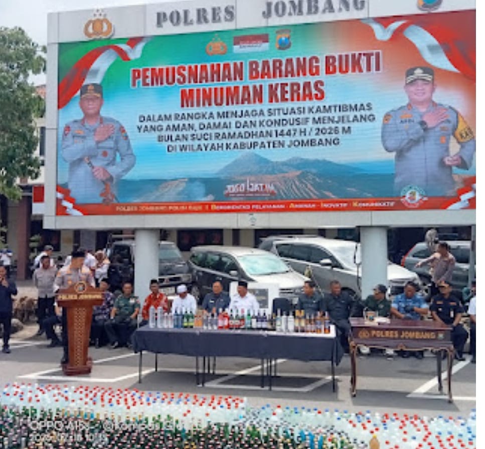 JOMBANG – Menjelang datangnya Ramadan 1447 Hijriah, Polres Jombang memusnahkan sebanyak 12.310 botol minuman keras (miras) hasil razia. Pemusnahan ini menjadi bentuk komitmen aparat dalam menjaga keamanan dan ketertiban masyarakat di Kota Santri.