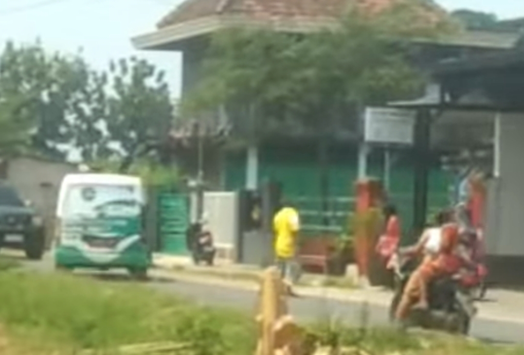 Peristiwa tersebut terjadi saat becak motor yang dikemudikan seorang tukang becak tengah melintas di jalan desa.