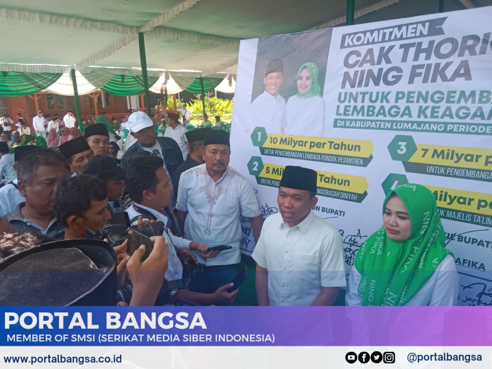 Lumajang, PORTALBANGSA.CO.ID – Cak Toriq dan Ning Fika berkomitmen akan mengakomodir apa yang dibutuhkam pesantren, lembaga pendidikan dan majelis solawat.salah satu komitmen ini disampaikan saat deklarasi pasangan calon bupati dan wakil bupati, di pondok pesantren Darun Najah, petahunan.