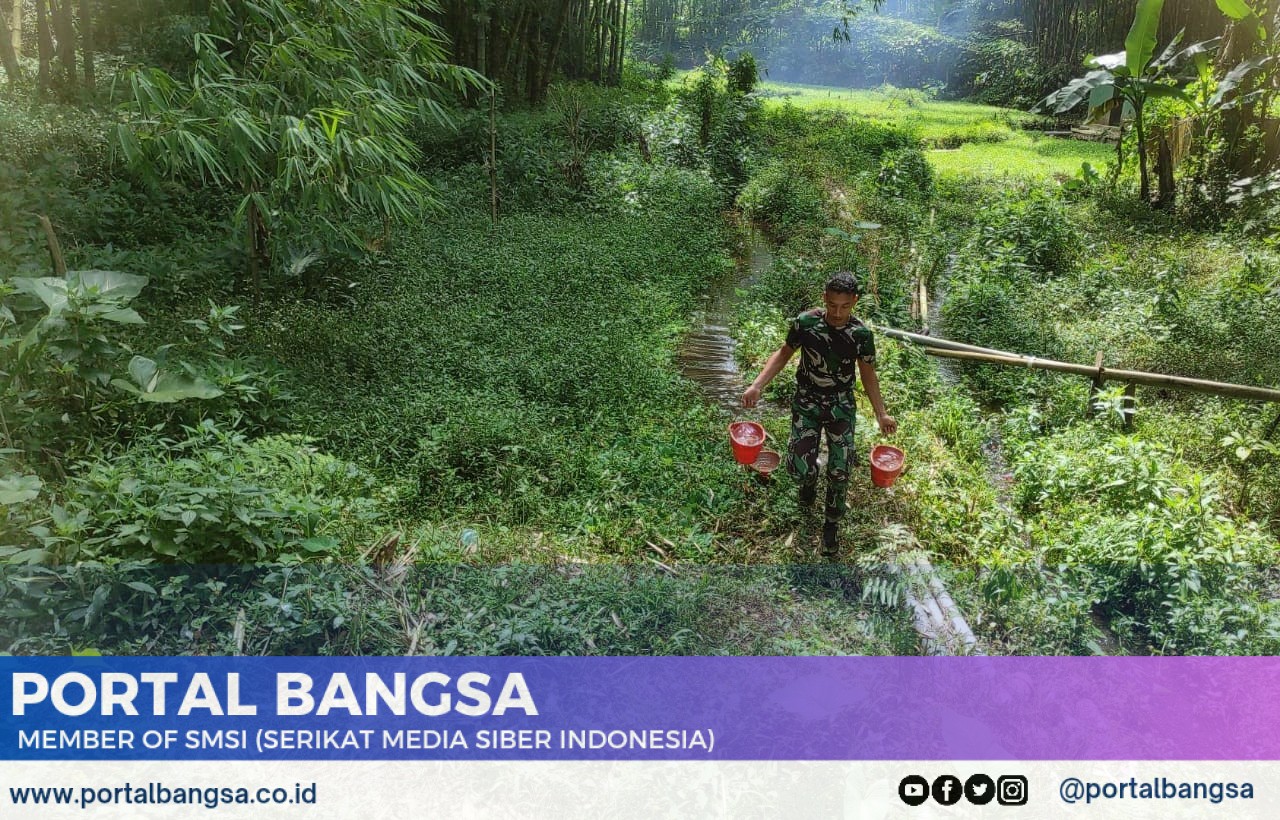 Bondowoso, Portalbangsa. Co. Id – Meski mesin penyedot air rusak, namun pekerjaan pengecoran gapura di Desa Gunosari Kecamatan Tlogosari Kabupaten Bondowoso itu tetap dilaksanakan oleh Satgas TMMD Reguler ke-123 Kodim 0822 Bondowoso Sendiri. Dalam mengatasi hal itu, personel Satgas TMMD bahu membahu mengangkut air guna keperluan adukan semen dan mengisi air pendingin mesin molen.