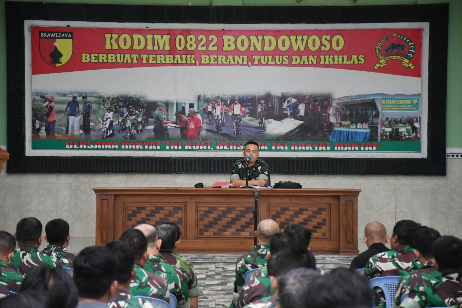 Dandim 0822/Bondowoso Letkol Arm Suhendra Chipta, M.Tr.Hanla., mengatakan, “Menyampaikan kepada seluruh anggota untuk lebih memahami peran dan tugas masing-masing. Khusus kepada Babinsa agar selalu hadir di tengah tengah masyarakat, guna membantu kesulitan warga binaannya.