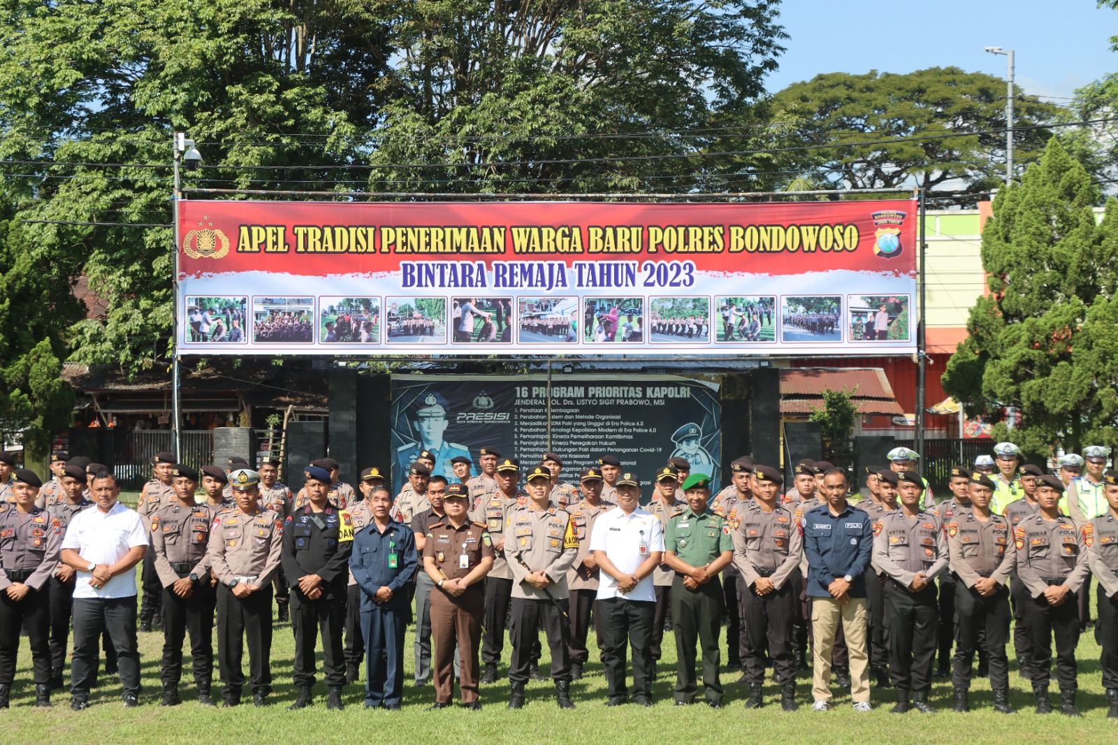 Kegiatan tersebut diikuti oleh Kapolres Bondowoso AKBP Wimboko, SIK. M. Si diikuti jajaran Polres Bondowoso, PJU Polres Bondowoso, ASN Polres Bondowoso dan para Bintara Remaja Baru.
