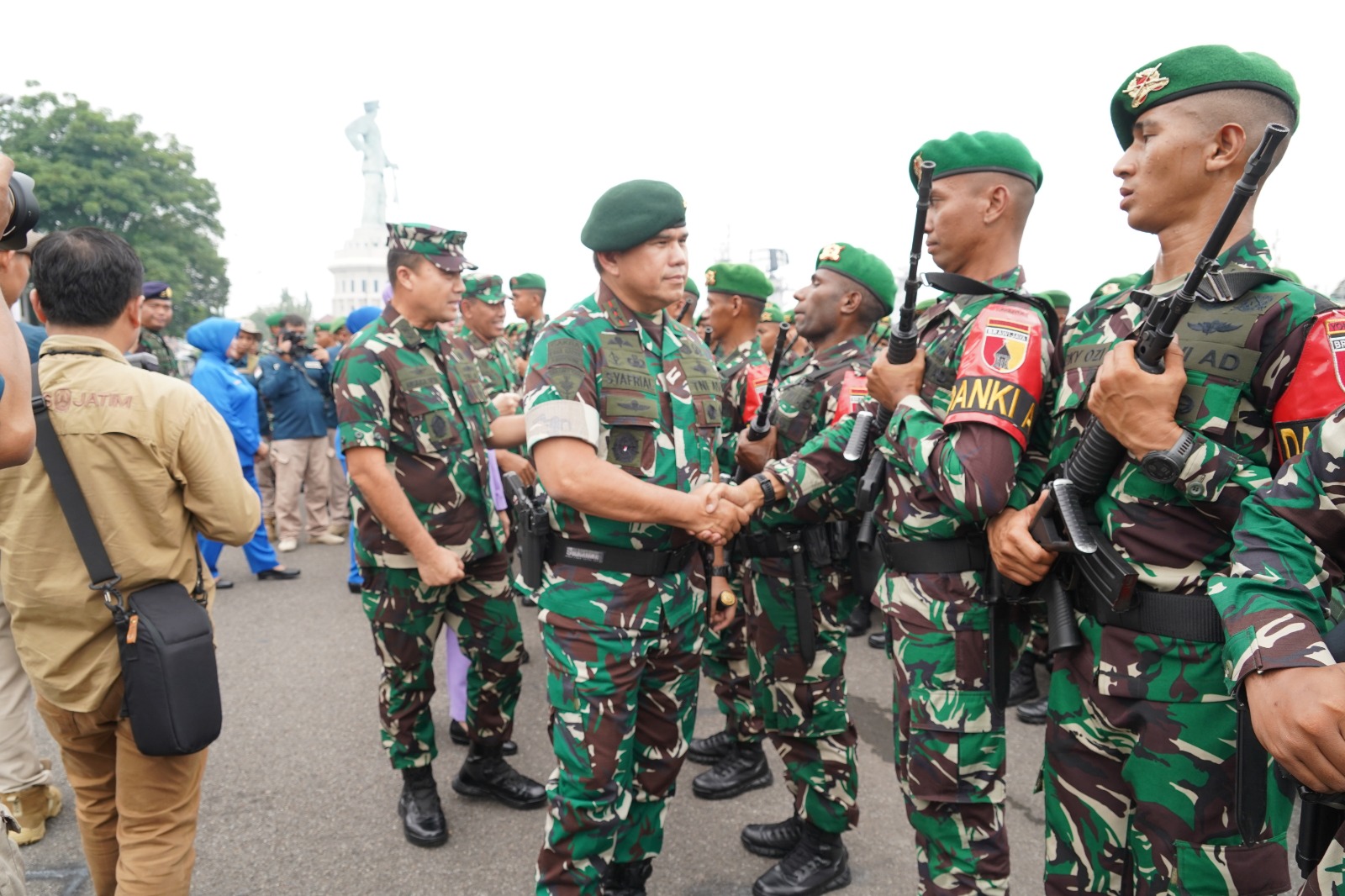Malang, KLIKTODAY.CO.ID – Panglima Divisi Infanteri 2 Kostrad, Mayor Jenderal TNI Syafrial, PSC., M.Tr.(Han)., menghadiri Upacara Pemberangkatan Satgas Pamtas Prov. Papua dan Papua Barat Yonif 527/BY dan Yonif 407/PK TA. 2023, yang dilaksanakan di Dermaga Madura Ujung Koarmada ll Surabaya, Jawa Timur. Dalam upacara tersebut dipimpin langsung oleh Panglima TNI Laksamana TNI Yudo Margono. Sabtu (01/04/2023).