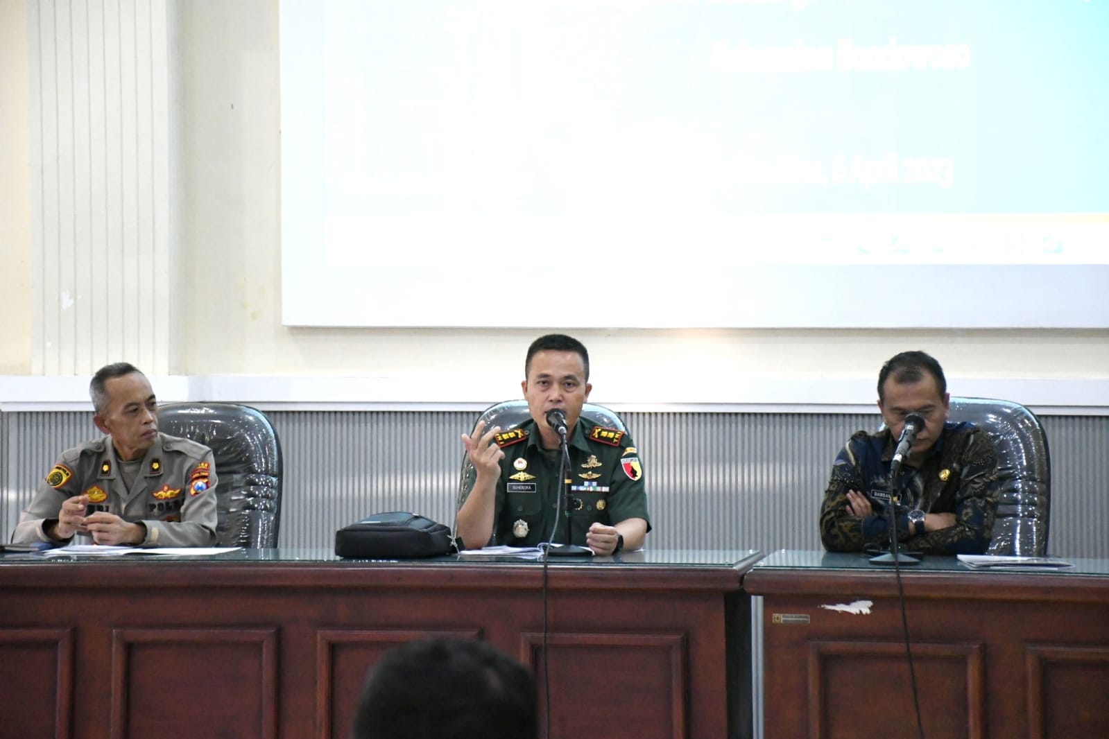 Dandim 0822/Bondowoso Letkol Arm Suhendra Chipta, M. Tr.Hanla, Kapolres Bondowoso diwakili Kompol Budi, SH., Sekda Bondowoso Drs. Bambang Soekwanto, MM., dan Kepala Dinas BPS Bondowoso Muhamad Ismail, A.Md.Stat., serta Kepala OPD dan Camat jajaran Pemkab. Bondowoso.