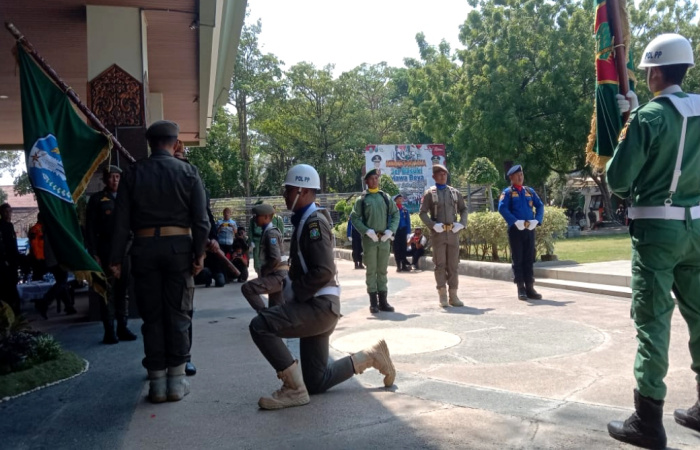 Serah terima Bendera Pataka diserahkan oleh Kasatpol PP Bondowoso kepada Pj Bupati Probolinggo dan diserahkan kembali ke Kasat Pol PP Probolinggo