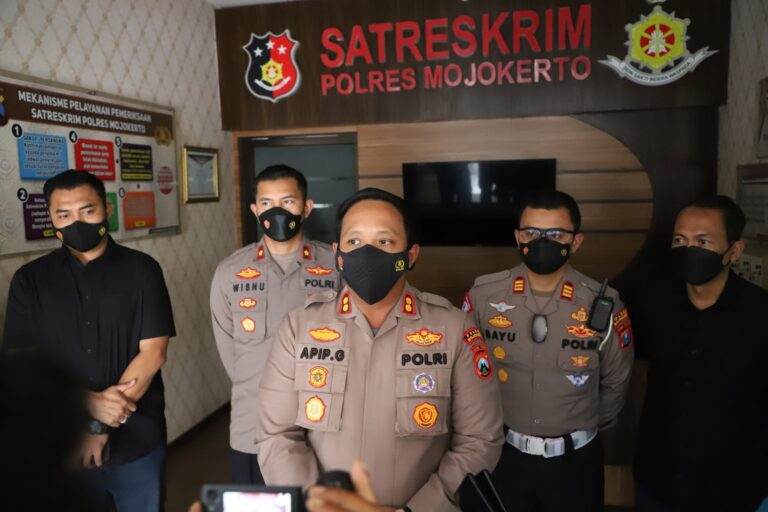 Saat ini pelaku telah diamankan di Mako Polres Mojokerto Kota beserta barang bukti meliputi HP berisi Foto dan Video korban, Kaos tersangka, gambar Screenshoot percakapan antar pelaku dan korban, kondom dan sex toys milik tersangka.