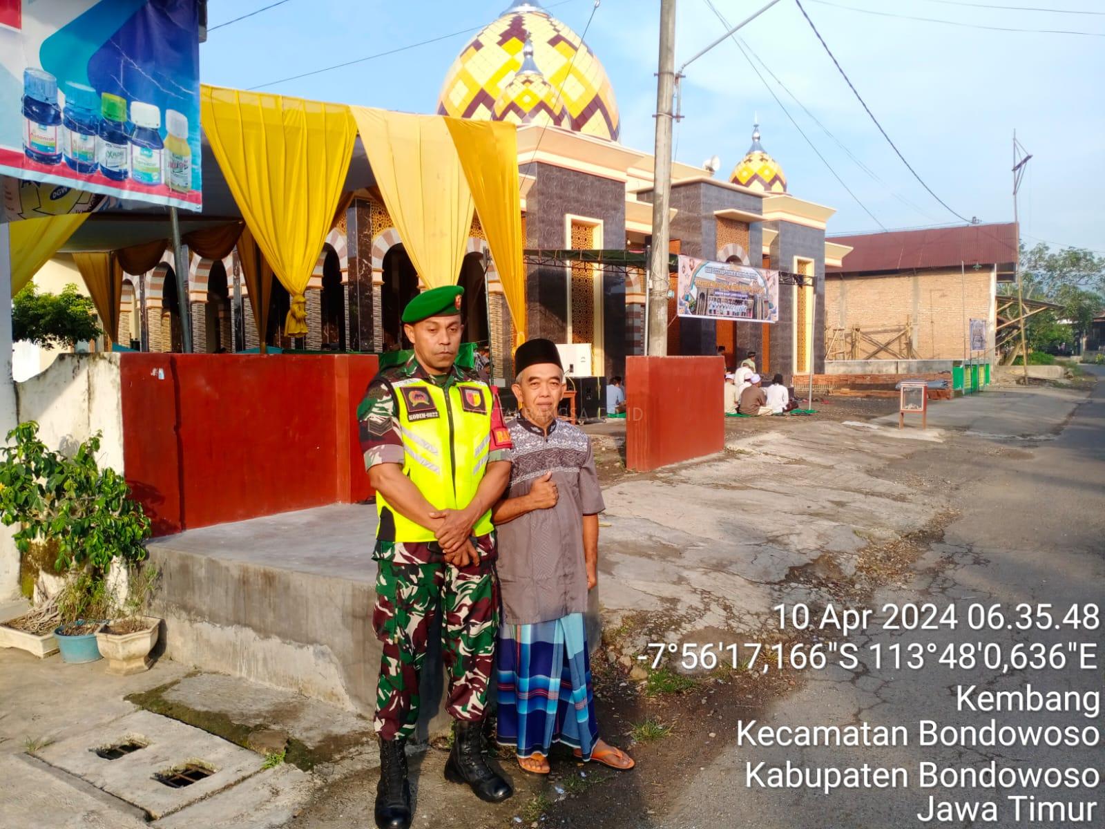 “Kegiatan ini bertujuan untuk memantau langsung kegiatan ini, sekaligus kita juga akan terus mendukung kelancaran kegiatan ibadah sholat Idul Fitri serta menjaga situasi tetap aman kondusif,” jelas Danramil.